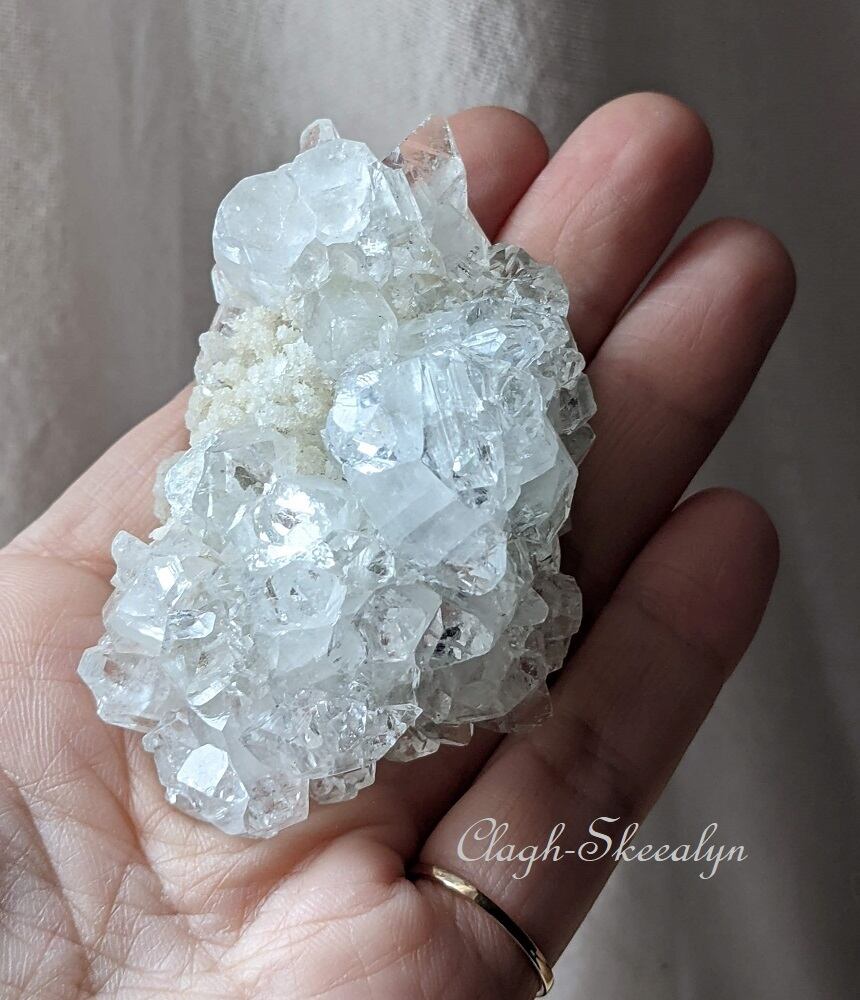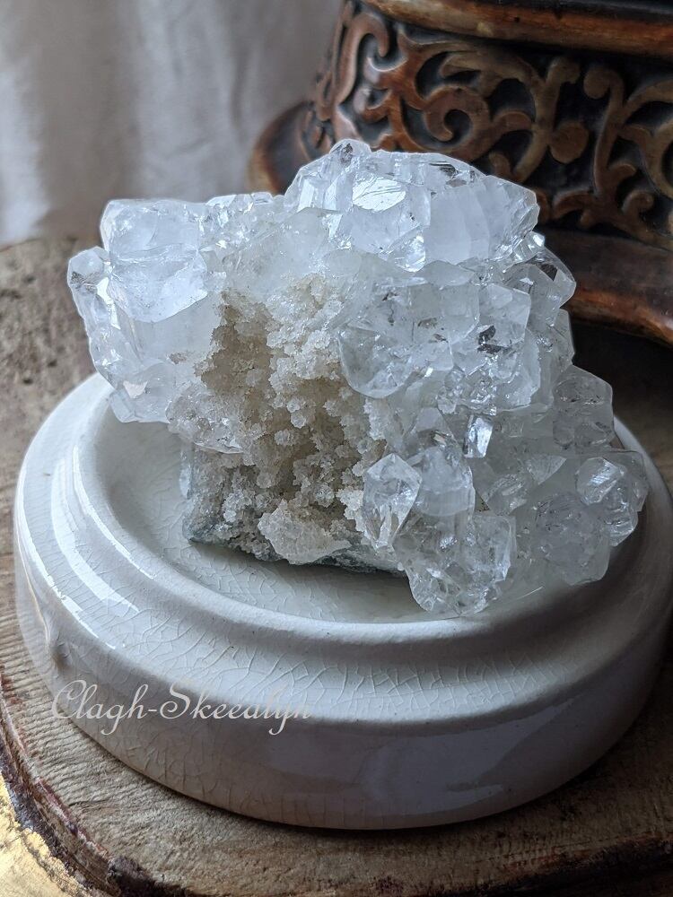 小さな結晶が集まった、美しいアポフィライト・クラスターです。