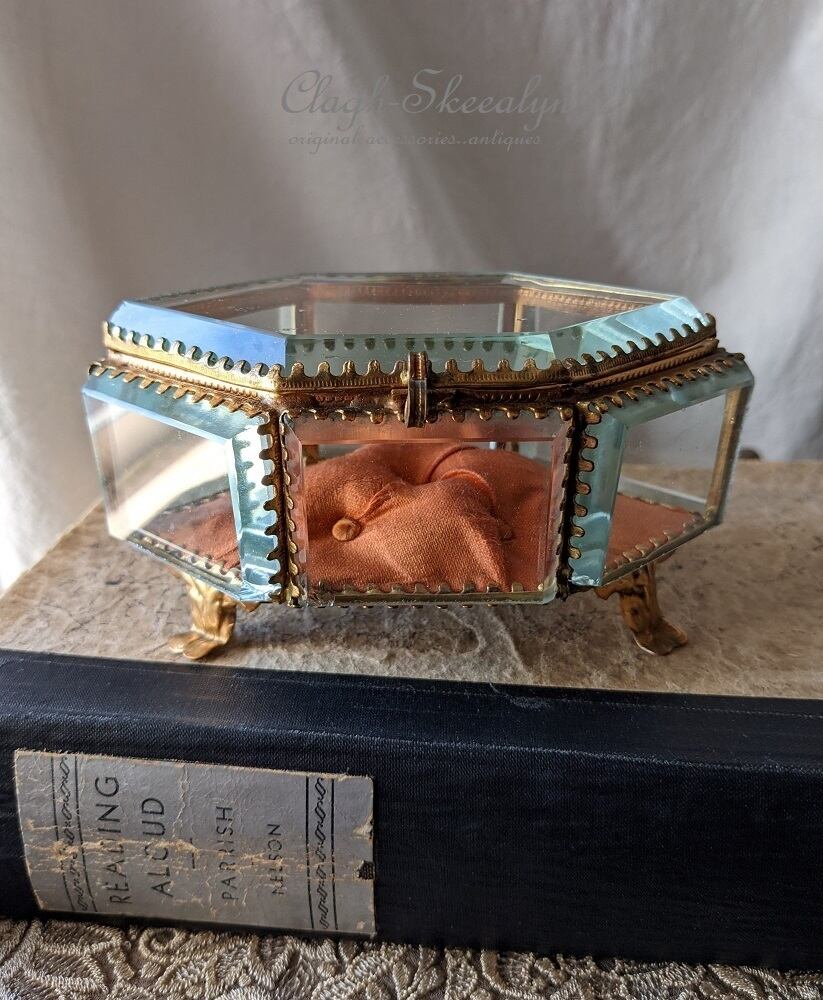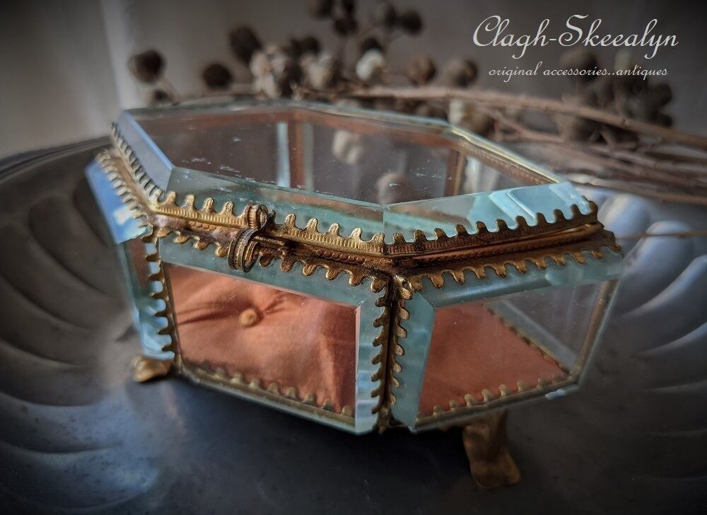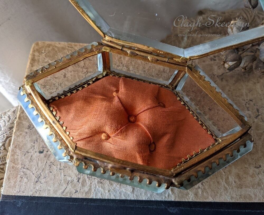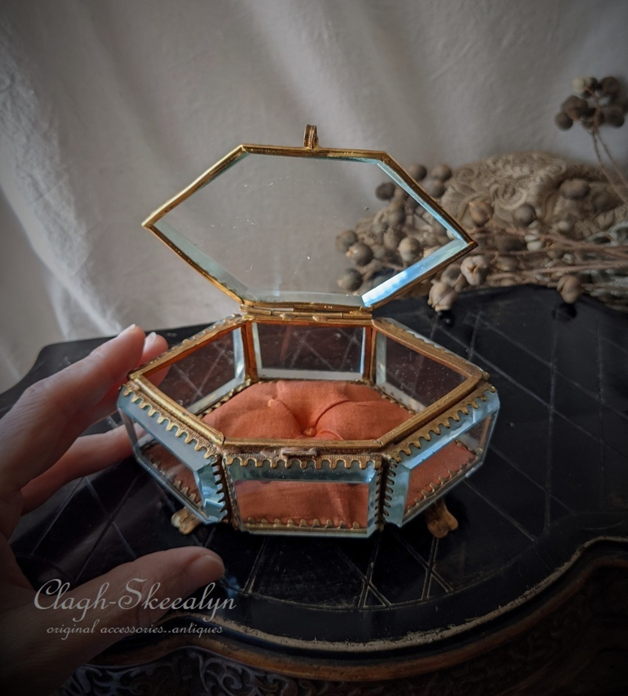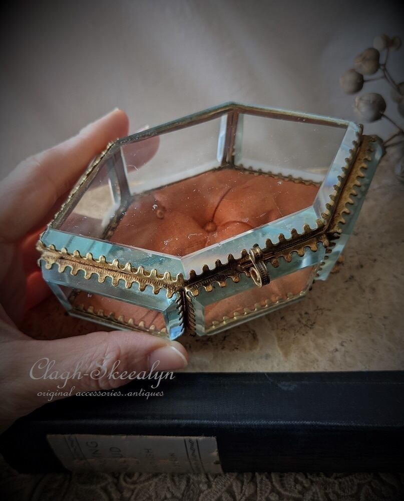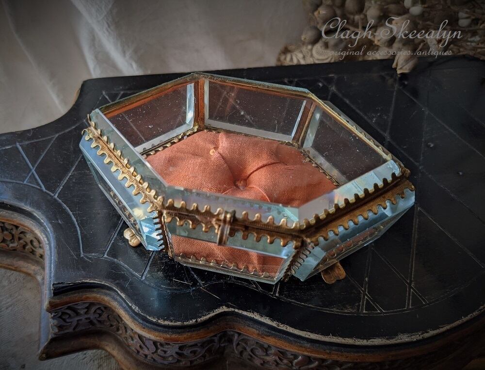 French Antique【フランス製アンティーク】6角形 クリスタルガラス|ジュエリーケース|アンティークジュエリーBOX |19世紀頃