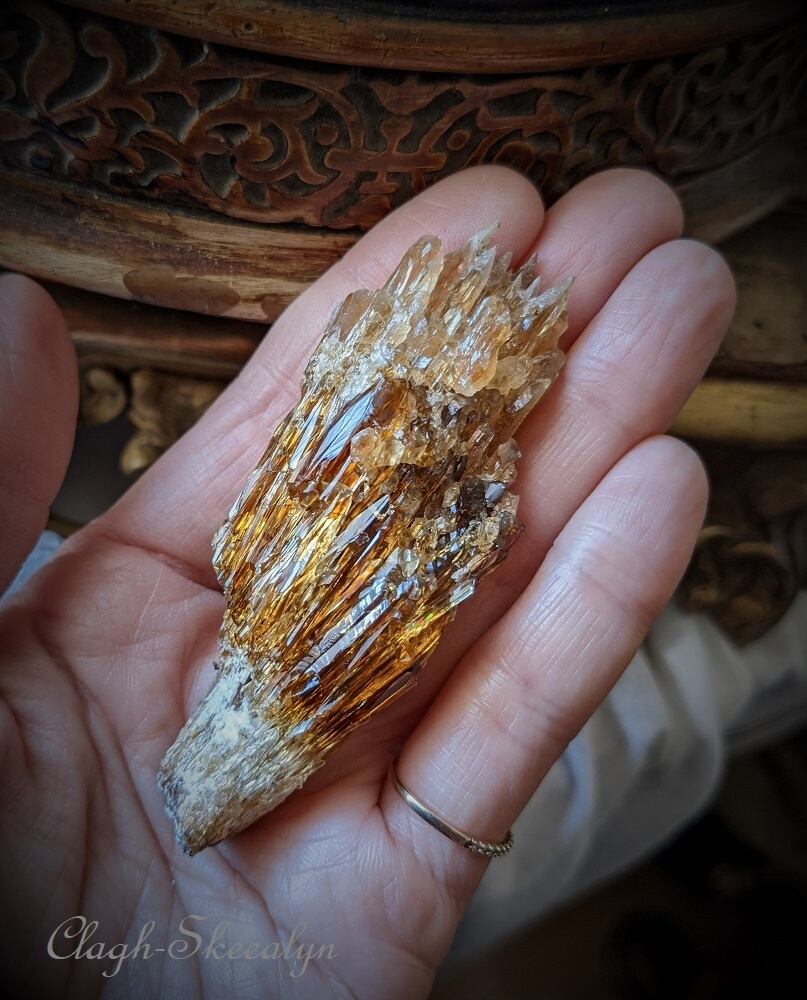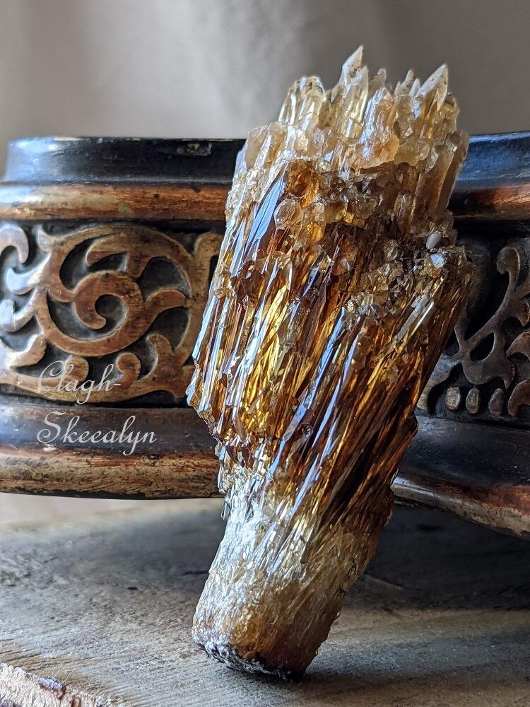 また、琥珀のような色合いをしていることから、アンバーカルサイトやハニーアンバーカルサイトという流通名で呼ばれる事もあります。