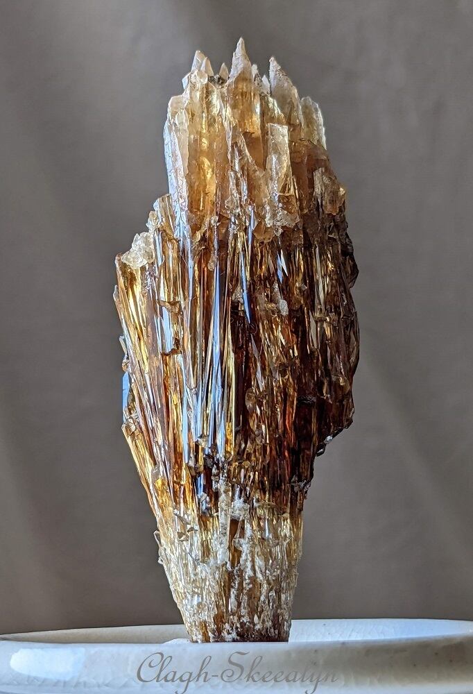 無数の細いポイント状の結晶が寄り添い、重なり合いながら形成されたシルエットが特徴的で「犬牙状カルサイト」と呼ばれております。(※大変繊細で欠けやすいのでお取り扱いにご注意下さい)