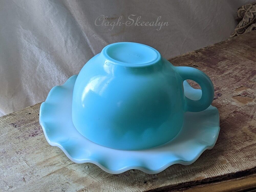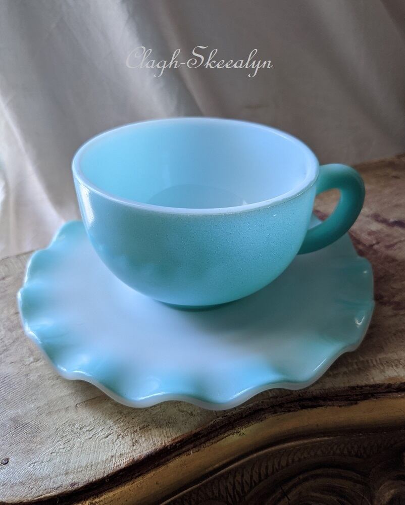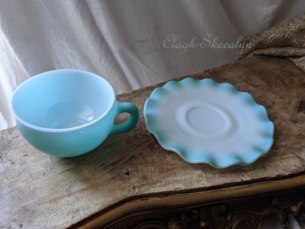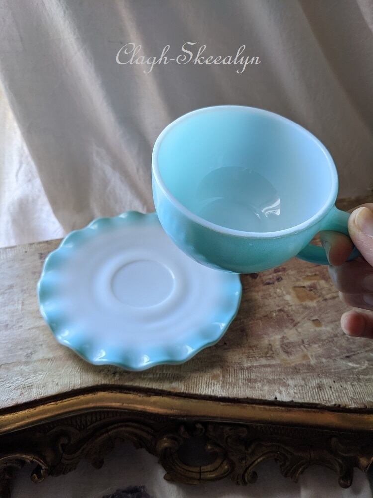 【USA Vintage】へーゼルアトラス|Hazel-Atlas |リップル ブルー| カップ&ソーサー|1客 |プレーンハンドル|USA Vintage