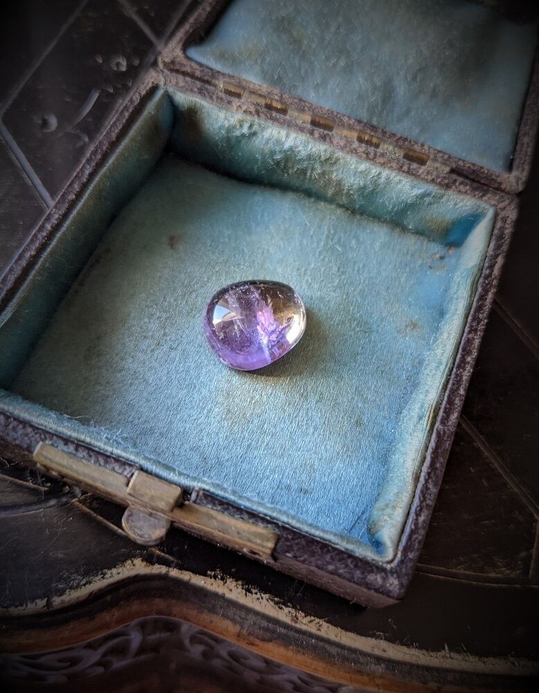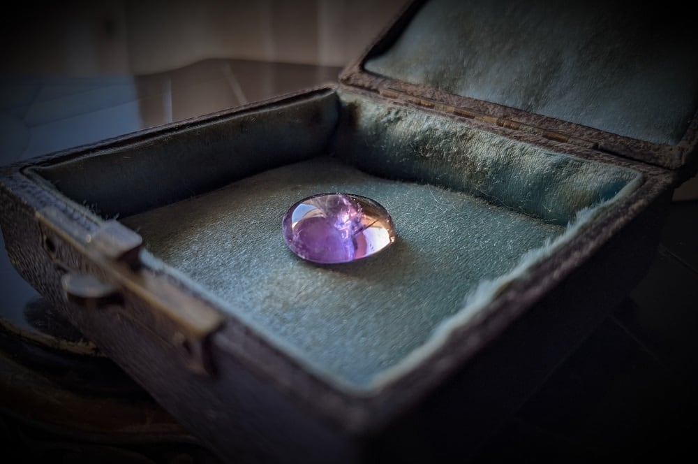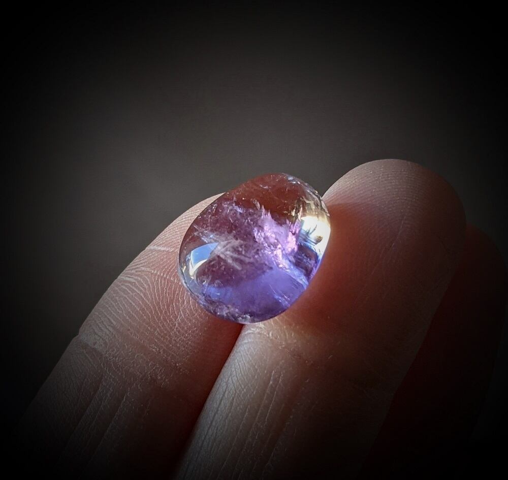 水晶の中にアメジストとシトリンを合わせ持つ、アメトリンのルースです。