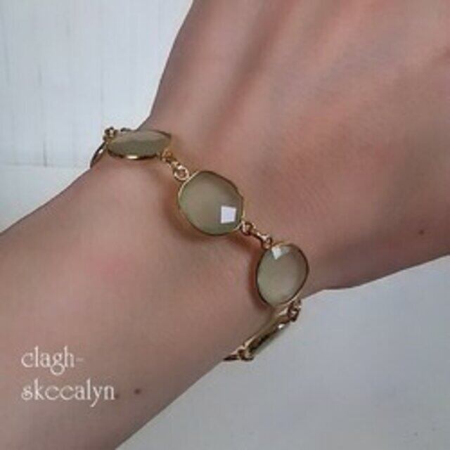 ラフなカッティングが可愛らしい、グリーンクォーツのブレスレット。
