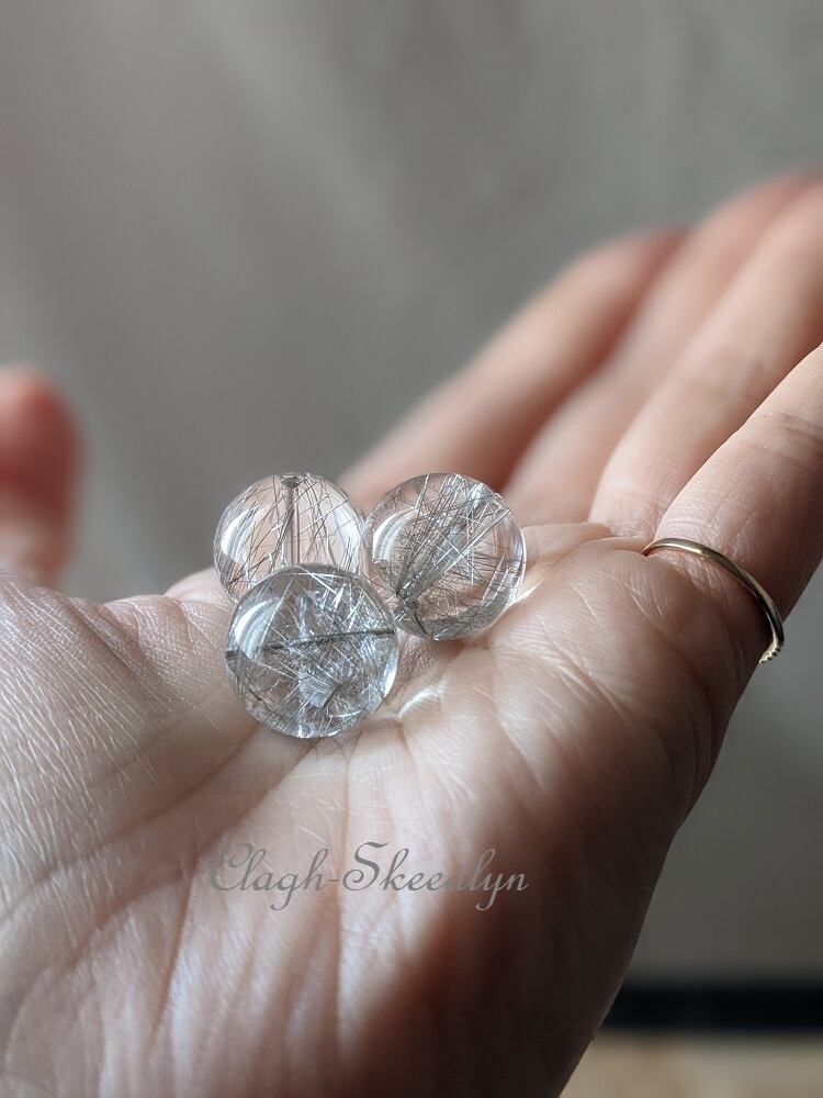 【Silver Rutile Quartz】シルバールチルクォーツ No.2 丸玉|16mmサイズ|金紅石入り水晶 |ブラジル産|天然石ビーズ